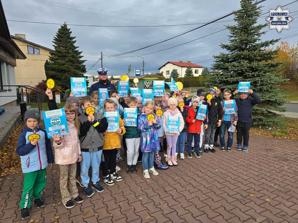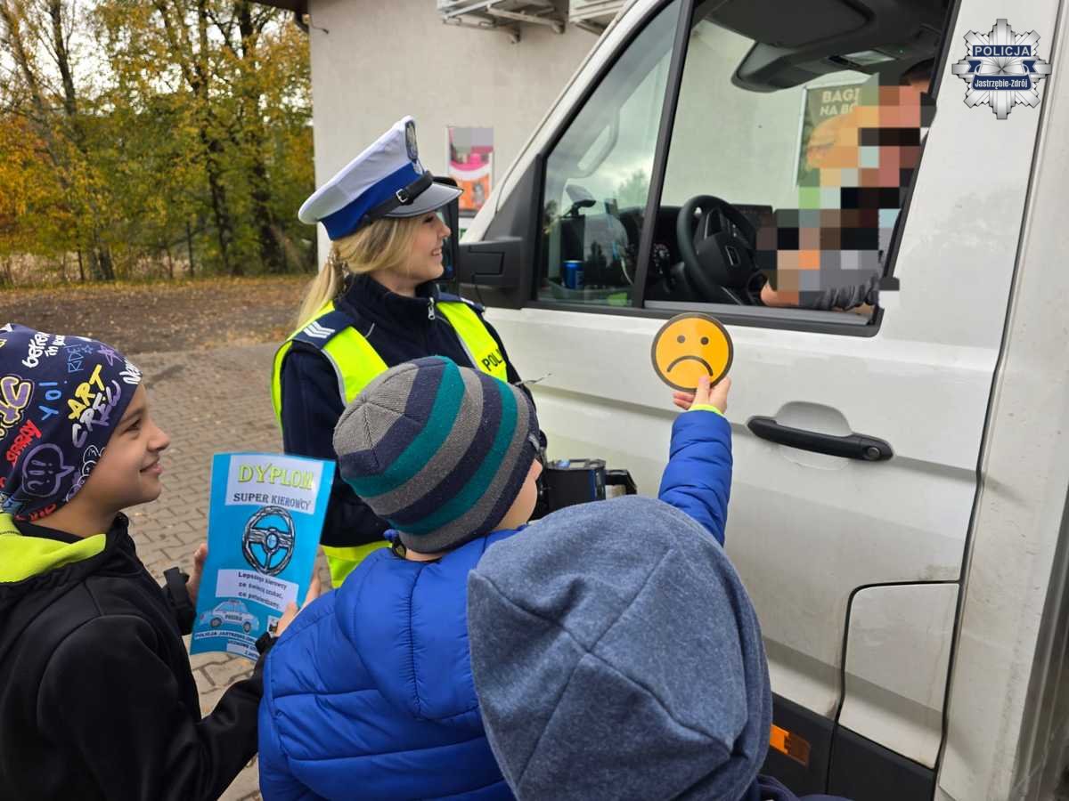 Podczas trwającej akcji informacyjno-edukacyjnej „Świeć Przykładem - Noś Odblaski!”, policjanci ruchu drogowego z jastrzębskiej komendy przeprowadzili akcję promującą bezpieczeństwo na drodze. Celem działań było zachęcanie niechronionych uczestników ruchu drogowego, przede wszystkim pieszych, do korzystania odblasków. Mundurowi, wspierani przez uczniów, dyscyplinowali kierowców „mandatami” przygotowanymi przez dzieci, a wzorowych kierowców nagradzali „Dyplomami wzorowego kierowcy".