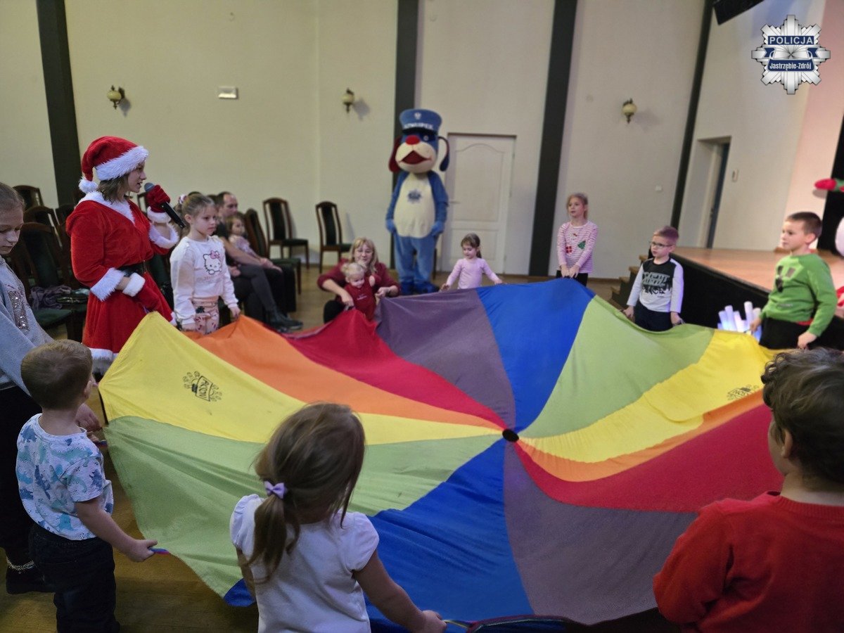 Jastrzębscy policjanci wspólnie z Mikołajem zawitali do najmłodszych mieszkańców w dzielnicy Zdrój. Wspólnie z dziećmi oczekiwali na przybycie Mikołaja. Wśród zabaw mundurowi wykorzystali ten czas na przekazanie najmłodszym cennych informacji z zakresu szeroko rozumianego bezpieczeństwa. Ich uśmiech i radość z przygotowanych niespodzianek były największym podziękowaniem dla organizatorów.