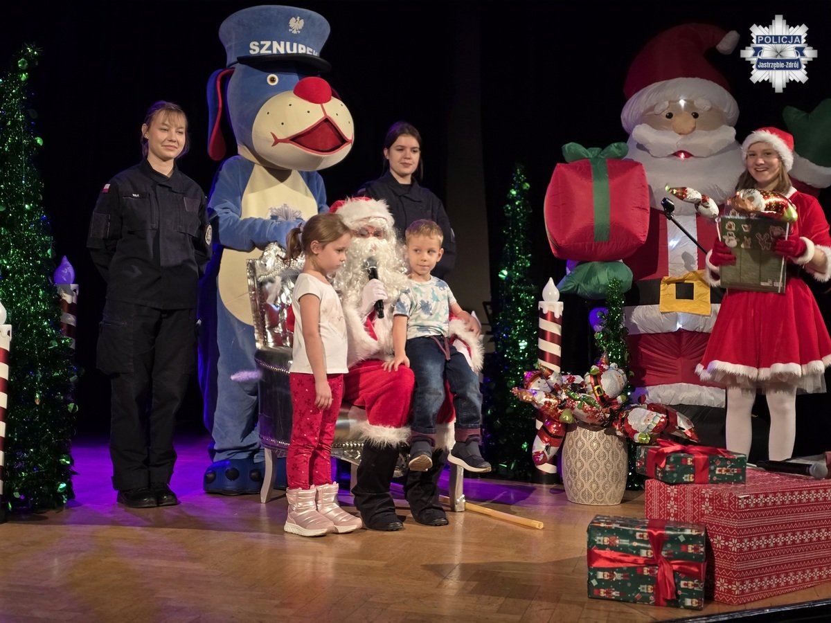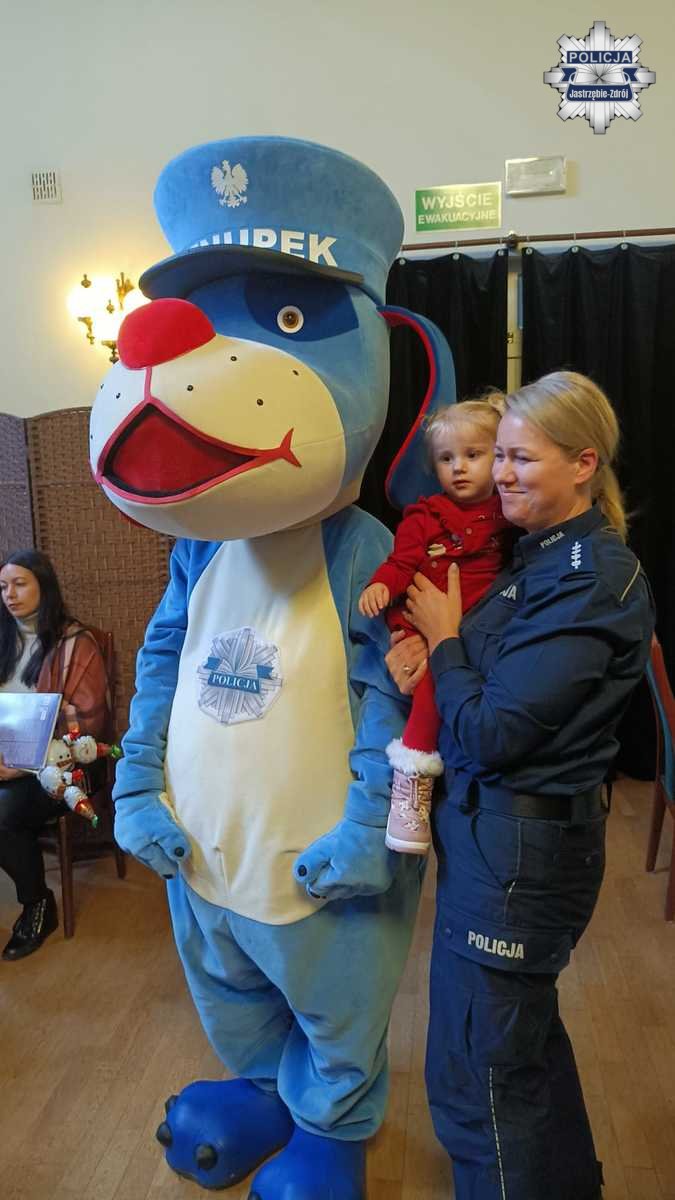 Policjanci wspólnie z dziećmi z wielką niecierpliwością czekali na największą atrakcję, czyli Mikołaja. Zanim on jednak dojechał z prezentami, mundurowi przygotowali dla dzieci wiele niespodzianek. Jastrzębscy policjanci wraz z uczniami III liceum Ogólnokształcącego im. Stanisława Wyspiańskiego w Jastrzębiu-Zdroju przekazali im cenne informacje, z zakresu szeroko rozumianego bezpieczeństwa. Mundurowi opowiedzieli, jak należy poruszać się po drodze i być bezpiecznym, szczególnie w tym okresie, gdy tak szybko zapada zmrok. Każdy maluch otrzymał zawieszkę odblaskową. Czekanie na Mikołaja minęło szybko, z uwagi na liczne zabawy zorganizowane przez organizatorów i w końcu z workiem pełnym prezentów przekroczył on próg placówki. Radości oraz uśmiechu było ogrom i w takiej atmosferze właśnie policjanci wrócili do codziennej służby. Na przybycie Mikołaja oczekiwała także policyjna maskotka Sznupek, ulubieniec naszych najmłodszych.