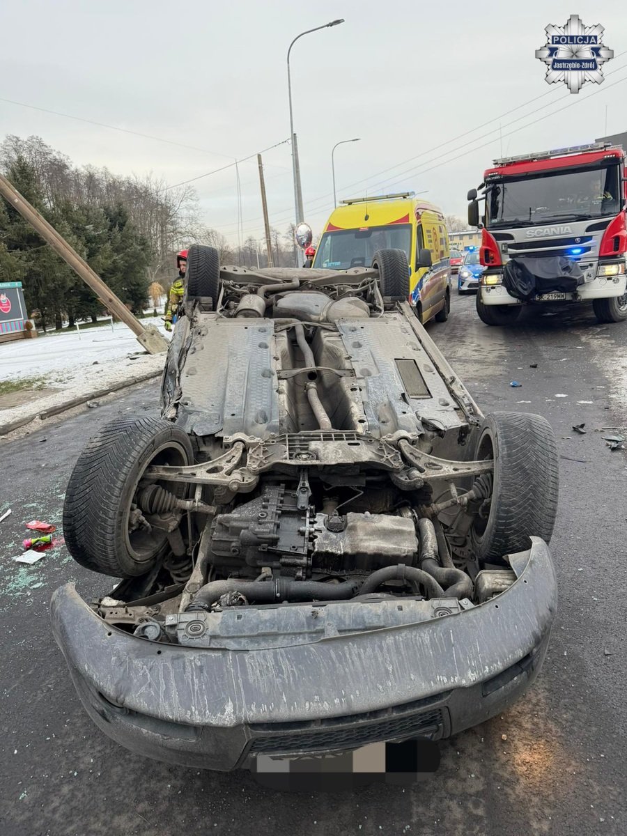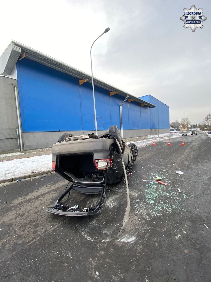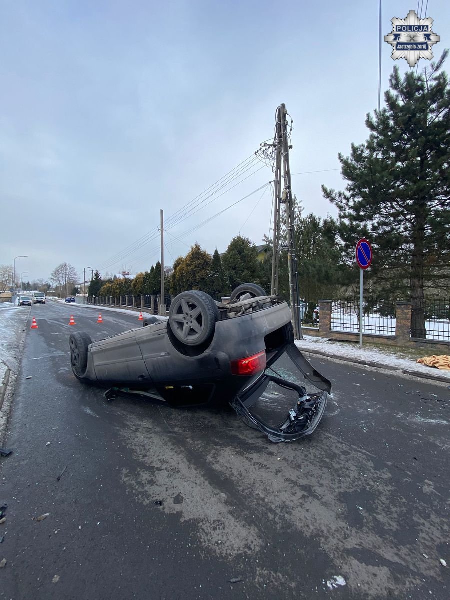 W piątek, około godziny 13:00 na ulicy Chlebowej w Jastrzębiu-Zdroju, doszło do dachowania auta. Jak ustalili policjanci, 24-letni jastrzębianin, jadąc osobówką, nie dostosował prędkości do warunków panujących na drodze, w wyniku czego stracił panowanie nad pojazdem, uderzył w słup energetyczny, po czym dachował. Kierowca był trzeźwy, został przewieziony do szpitala z uwagi na odniesione obrażenia.