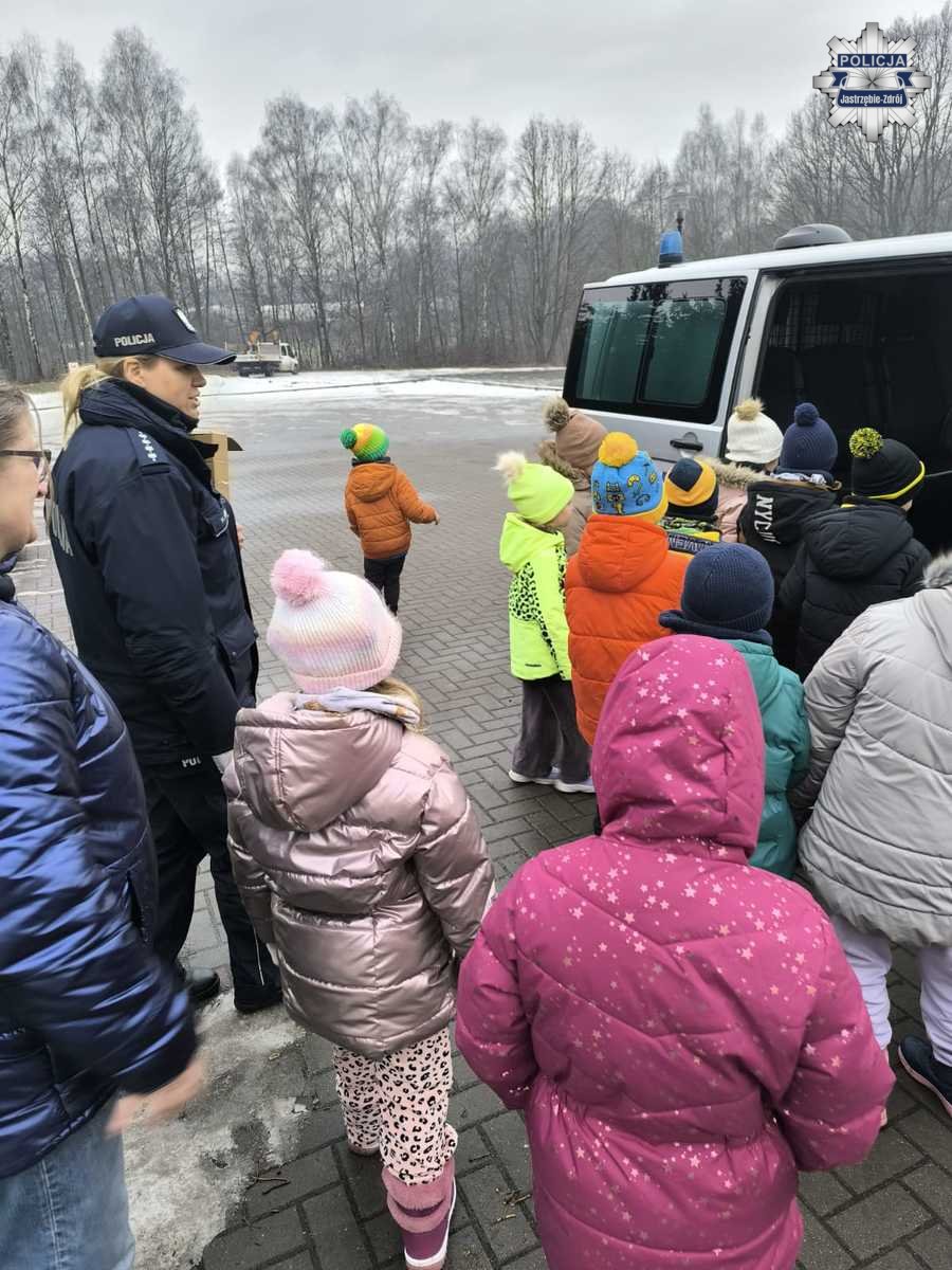 Podczas spotkania mundurowi rozmawiali z dziećmi o bezpieczeństwie zarówno w domu, jak i na świeżym powietrzu. Policjanci przypomnieli zasady bezpiecznej zabawy na śniegu i lodzie, właściwego zachowania w pobliżu jezdni oraz podczas poruszania się po drogach. Omówiono również kwestie związane ze zwierzętami, kontaktami z osobami nieznajomymi oraz sytuacjami, które mogą stanowić zagrożenie.