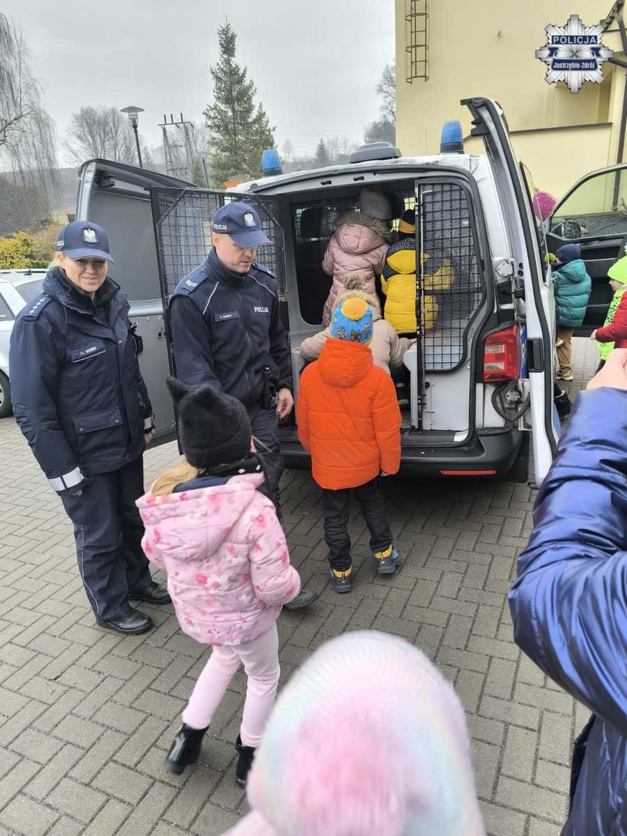 Jastrzębscy mundurowi odwiedzili uczniów ze Szkoły Podstawowej nr 21. Podczas spotkania rozmawiali z dziećmi o bezpieczeństwie zarówno w domu, jak i na świeżym powietrzu. Tego typu działania profilaktyczne są ważnym elementem codziennej pracy policjantów i mają na celu kształtowanie prawidłowych postaw oraz zwiększanie świadomości dzieci w zakresie bezpieczeństwa, szczególnie w okresie ferii zimowych.